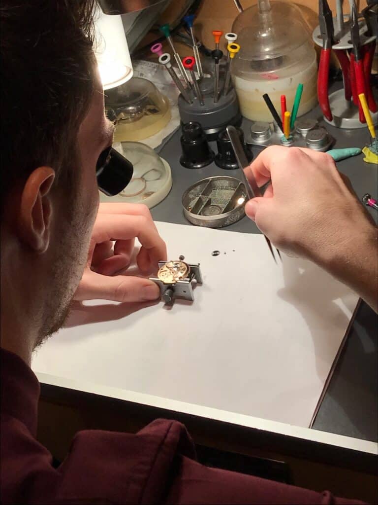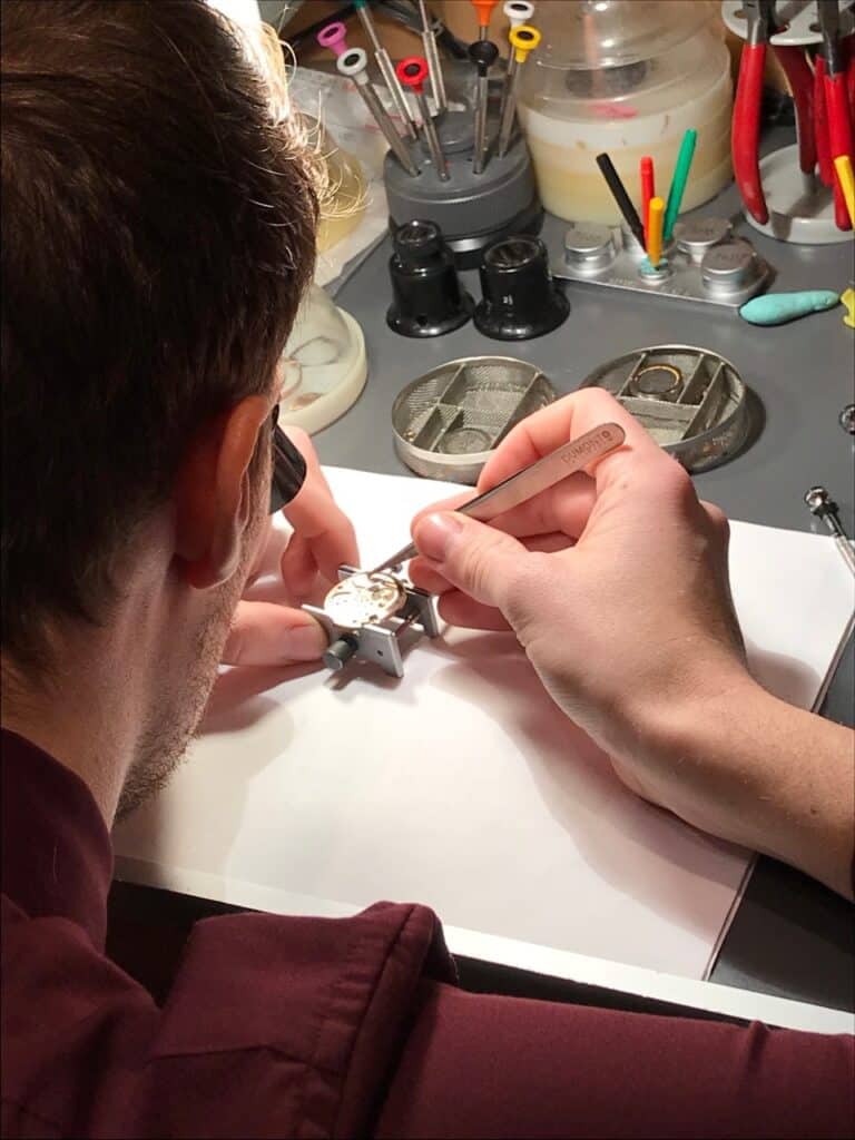 Alt fra vintage til nyt, kan som udgangspunkt repareres og skal med jævne mellemrum serviceres med rensning og eftersyn. Her bliver uret adskilt, renset, smurt og samlet.