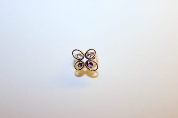 Dette vare har flere varianter. Mulighederne kan vælges på varesiden14 kt guldring med amatyst, granat og månesten.
