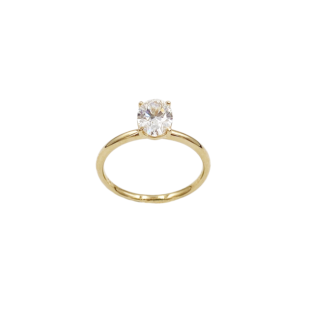 Ringen har en oval brillant slebet CVD diamant i farven River, som svarer til D på farveskalaen og er den mest sjældneste hvide farve, man kan få. Diamanten har klarheden VS, hvilket resulterer i en diamant med strålende udtryk, flot gennemsigtighed og en elegant, luksuriøs fremtoning.