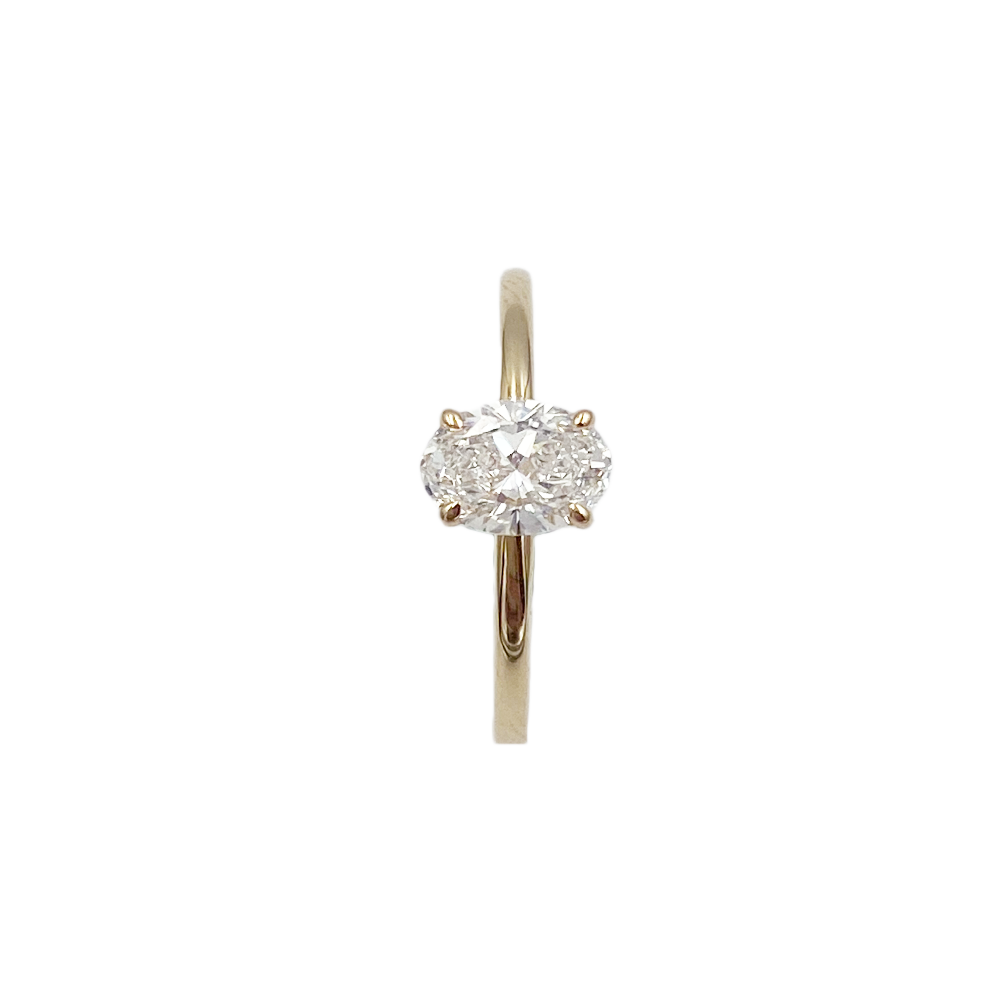 Ringen har en oval brillant form CVD diamant i farven River, som på farveskalaen er D, og med klarheden vvs.