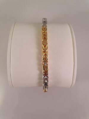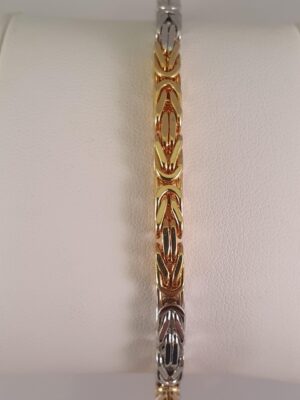 14 kt kongearmbånd 2 farvet, guld og hvidguld. 4,10 mm tyk, 18,5 cm lang.