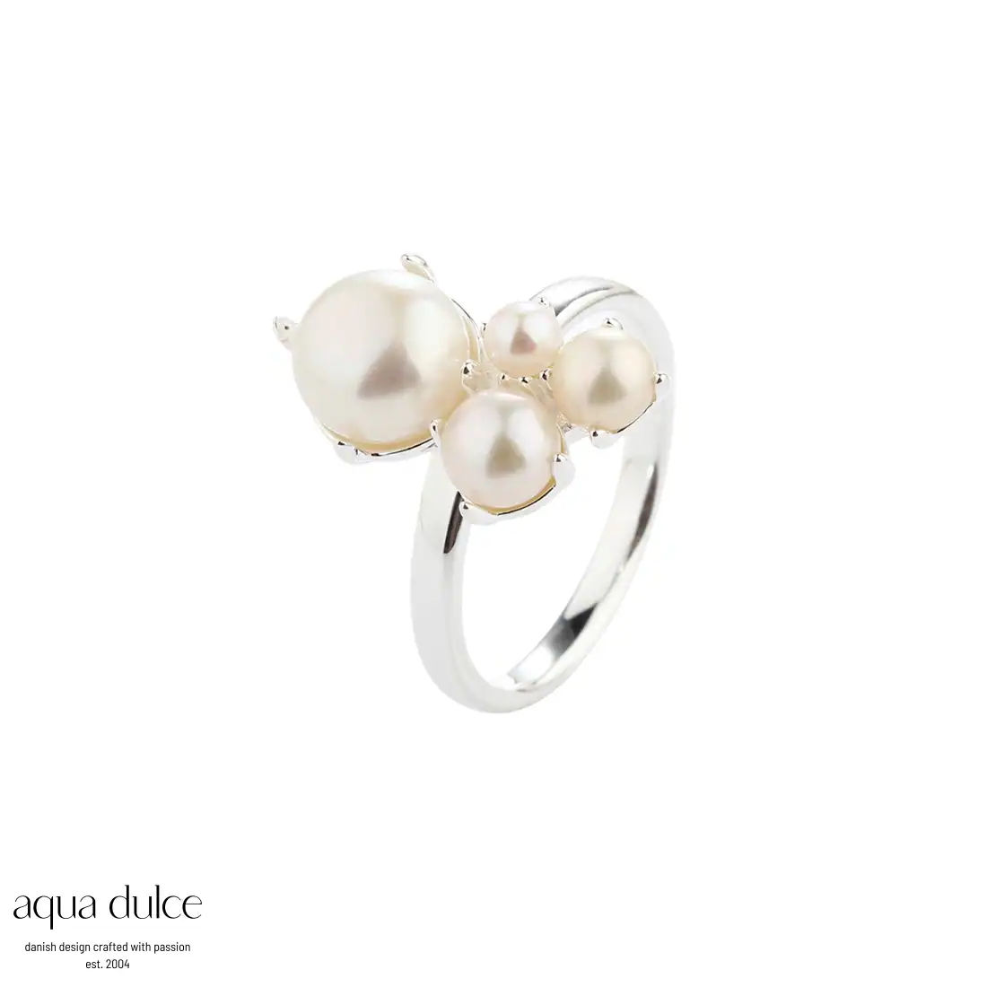 Aqua Dulce BUBBELS sølv ring med hvide ferskvandsperler.