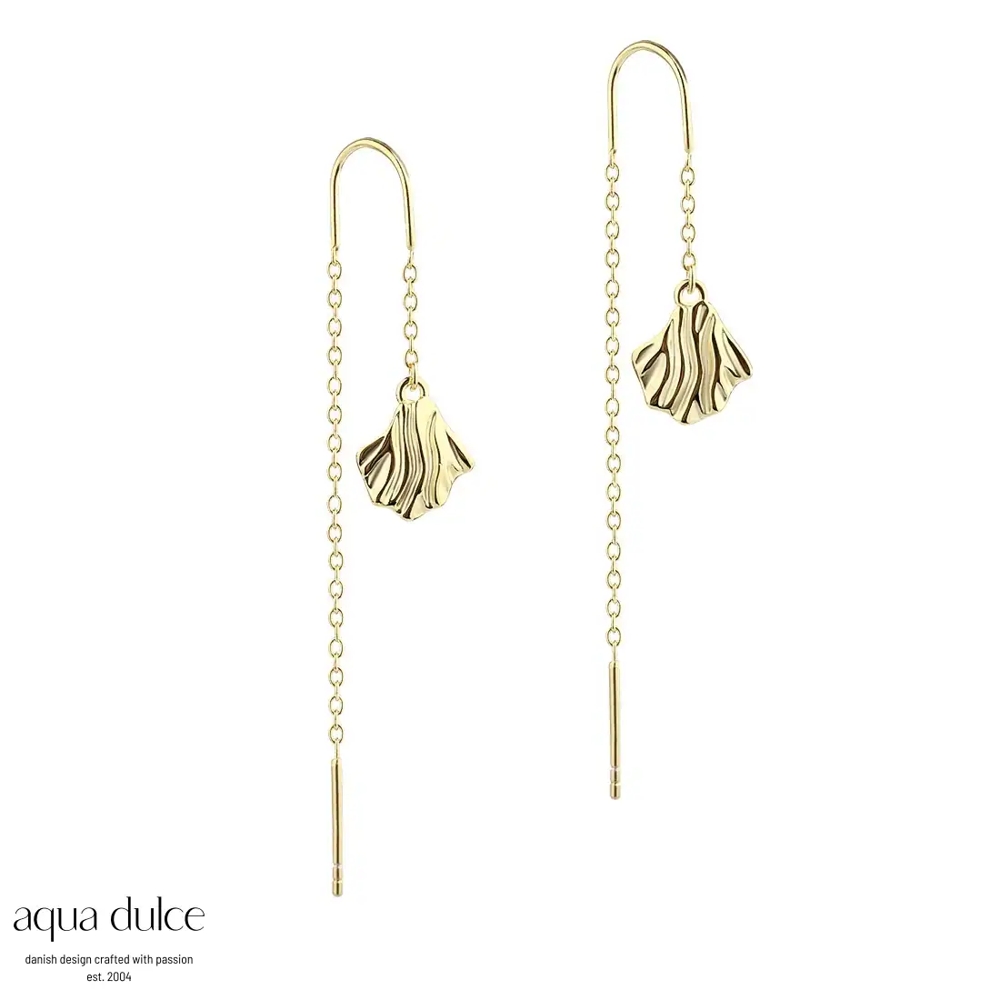 Aqua Dulce HULDA sølvforgyldte øretråde med bølgende vedhæng.