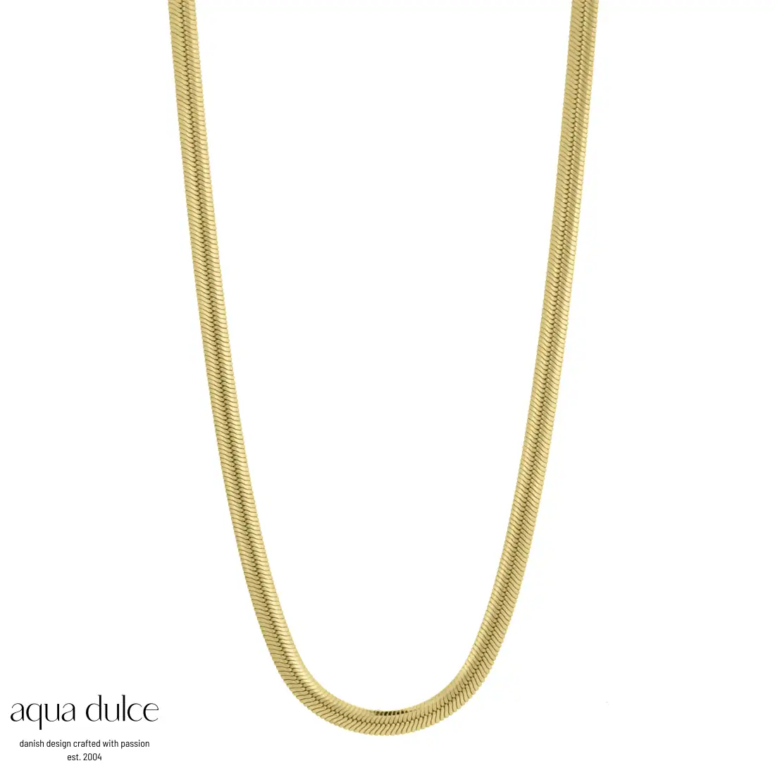 Aqua Dulce MALOU sølvforgyldt halskæde med flad & bred slangekæde.
