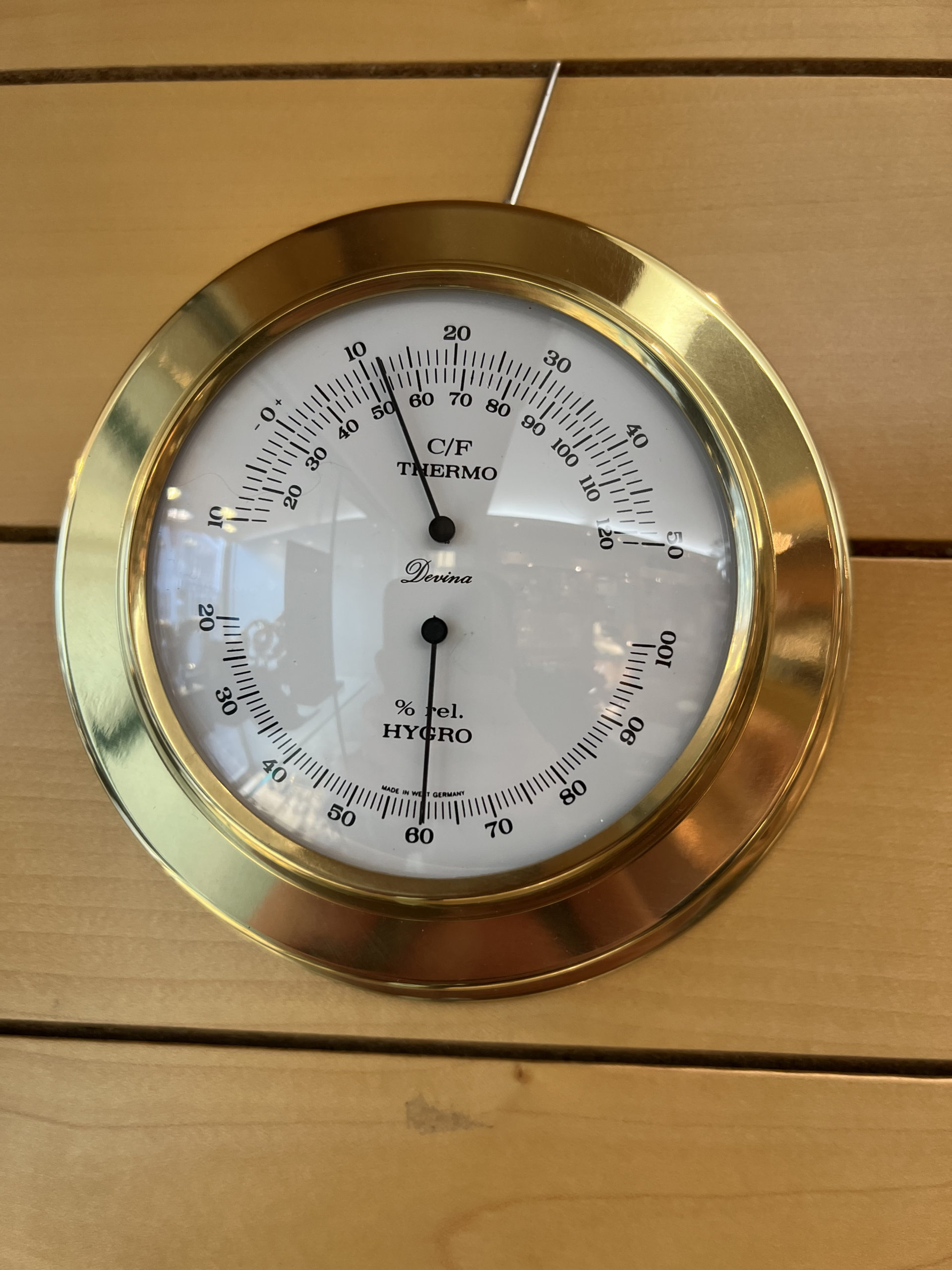 Devina Hygrometer og Termometer 16 cm – Messing med Guldfarvet Design