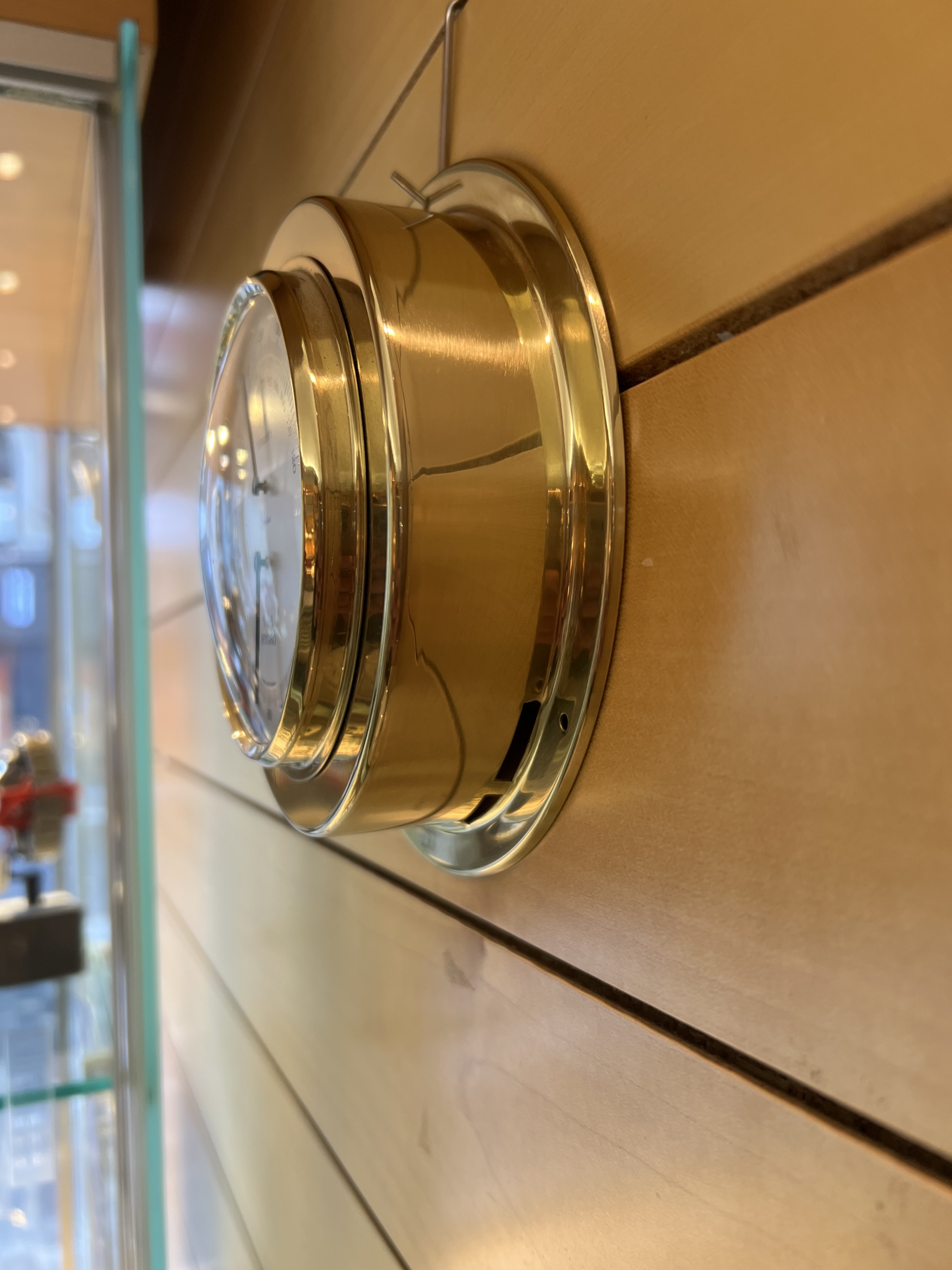 Messingkassen med guldfarvet finish giver et eksklusivt præg. Den hvide urskive holder designet enkelt og tidløst. Instrumentet passer perfekt i stue, udestue, kontor eller drivhus.