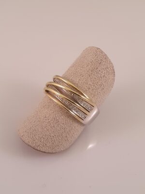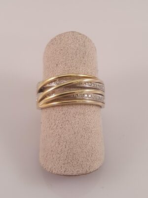 14 kt gitterring 2 farvet, med diamanter. 22x 0,005 W.SI.