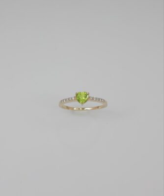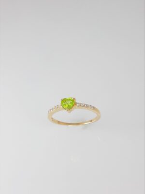 14 kt guldring med hjerte slebet Peridot sten og 0,10 W.SI diamanter.