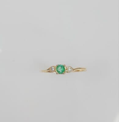 14 kt guldring med Smaragd og 2x 0,02 W.si diamanter.