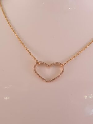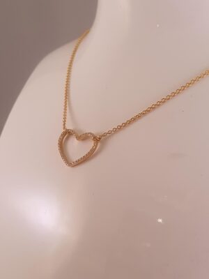 18 kt guld vedhæng hjerte med diamanter, 0,14 W.SI. på 18 kt guldkæde, 45 cm lang