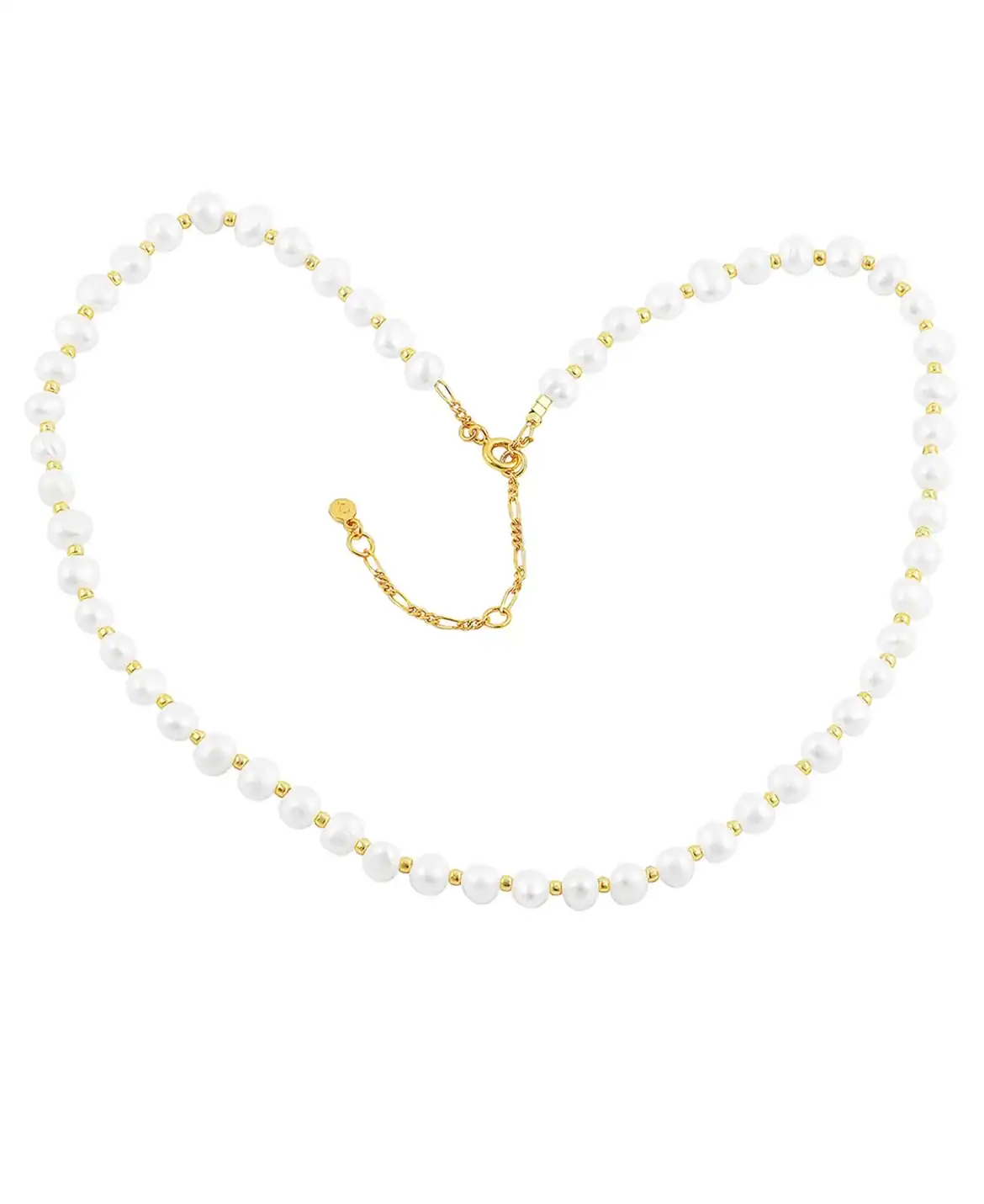 Arabella halskæde i sølv forgyldt er en klassisk perlehalskæde med små forgyldte perler mellem hver ferskvandsperle. Det er simpelt, elegant og kombineret med forskellige halskæder skaber det et smukt look.