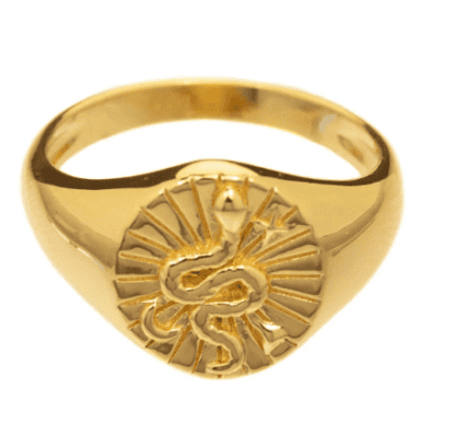 Slange ringen er en klassisk signet ring. Traditionelt blev signet ringen brugt til at forsegle breve, i dag bruger vi dem som smukke smykker.