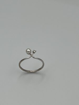 Hvidegulds ring med 1 diamant og perle.