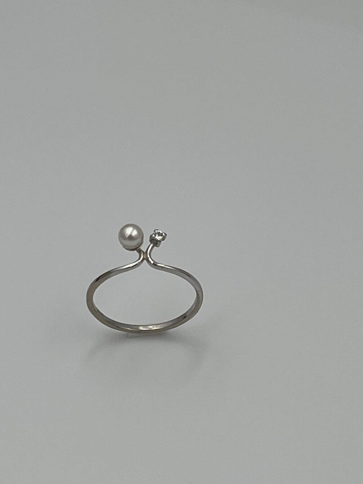 14 karat hvidegulds ring med 0,02ct diamant i w/vvs og fin ferskvandsperle.