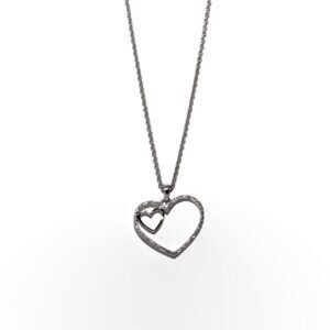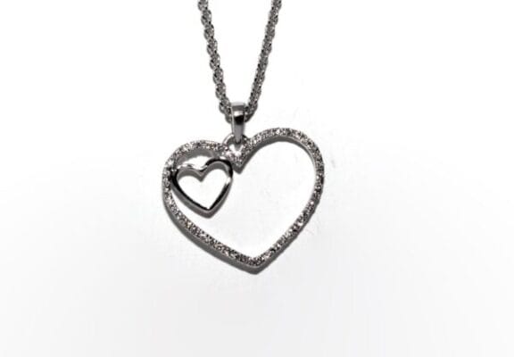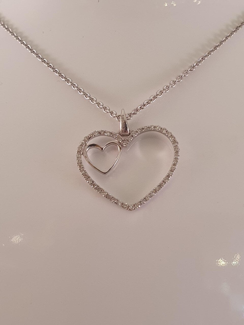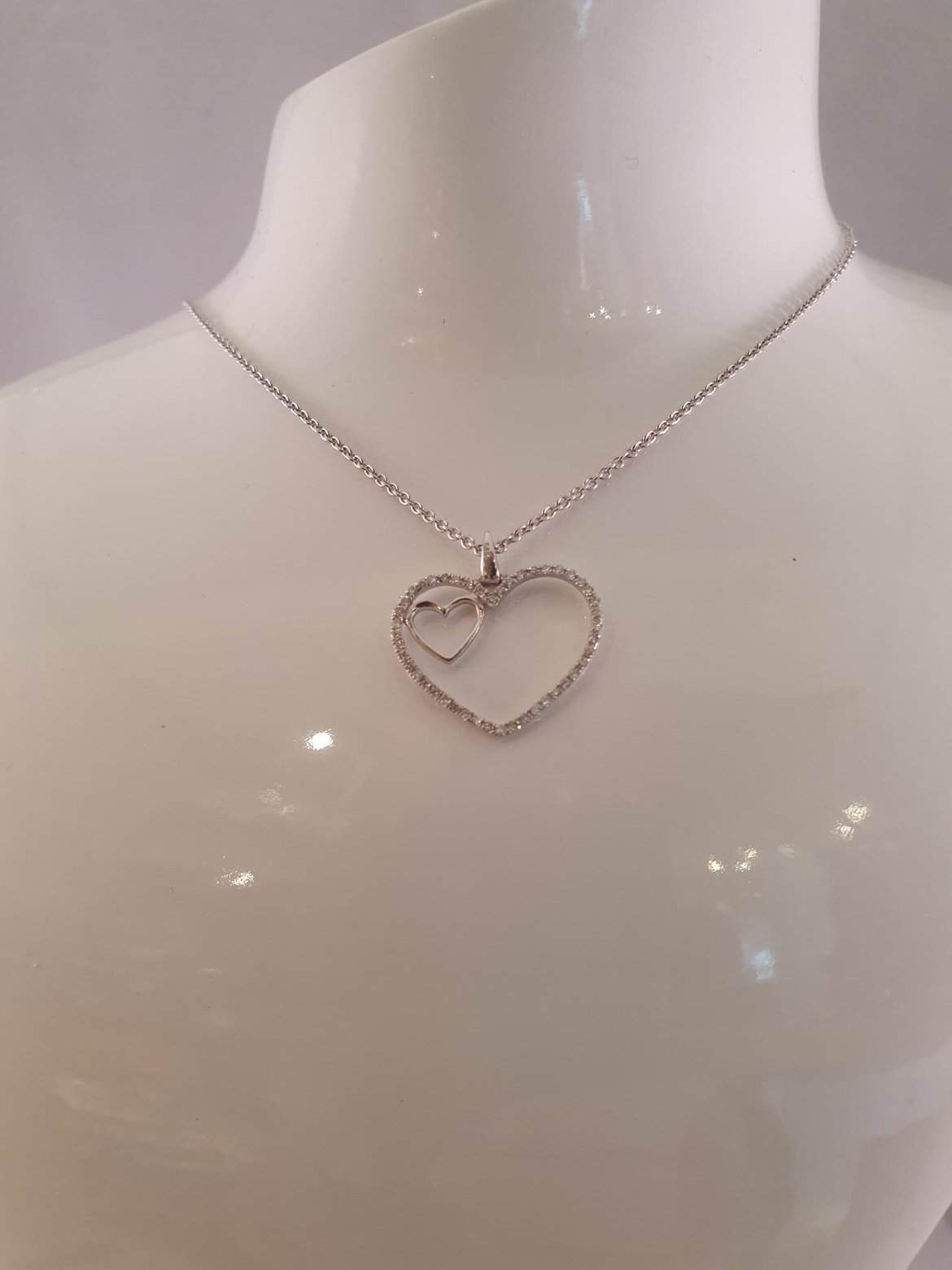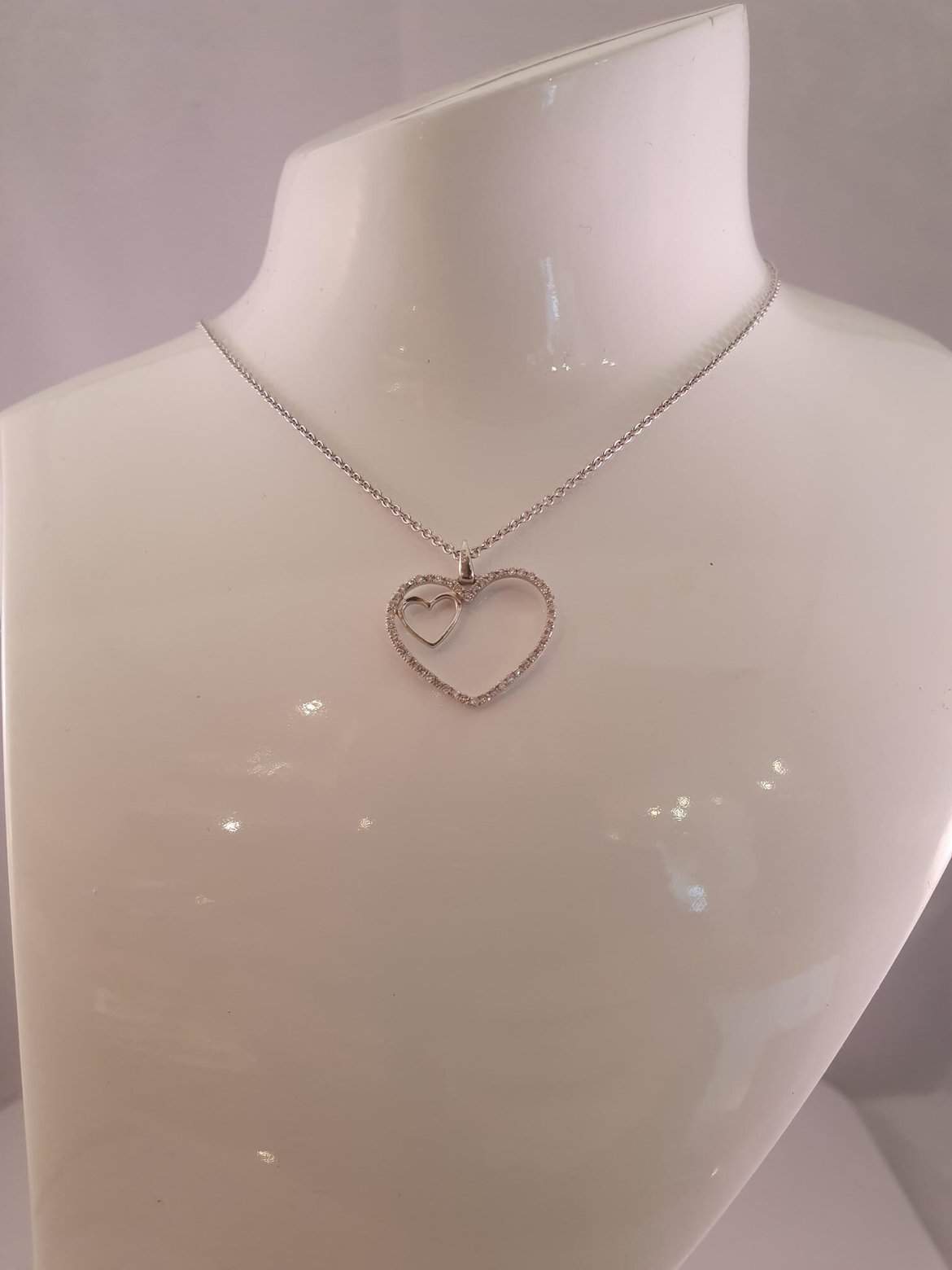 14 kt hvidgulds collie hjerte med diamanter, 0,18 w.si. sølv kæde medfølger.
