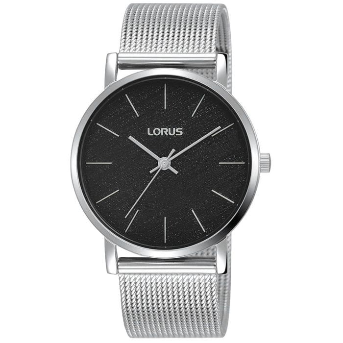 Lorus RG207QX-9 er et flot dame ur med sort skive og stål lænke. Uret tåler regnvand og til du vasker hænder. Urkassen måler 34mm.