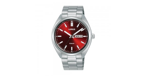 Lorus RH369AX-9 er et flot herrerur med rød skive med dag/dato og stål lænke. Urekassen måler 41mm og uret har en vandtæthed op til 100 meter.
