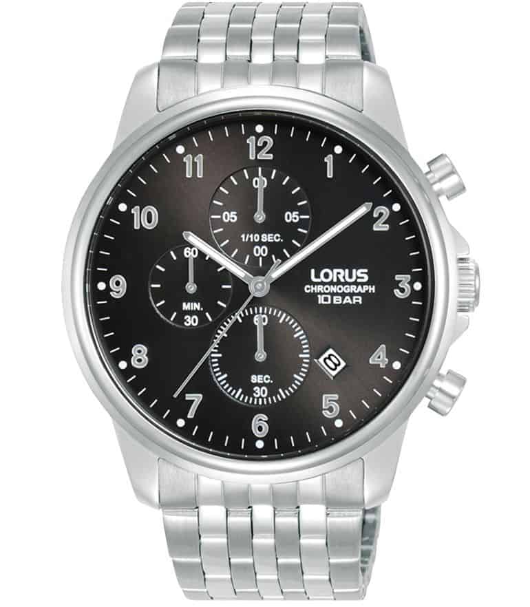 Lorus RM335JX9 er et flot herrerur med sort skive og stål lænke, urets kasse måler 43mm og har selvlysende viser. Uret har en vandtæthed op til 100 meter, uret er med stopur og dato.
