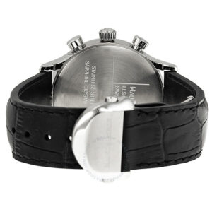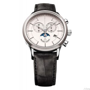 Maurice Lacroix Les Classiques månefase ur med sort læderrem og kronograf.