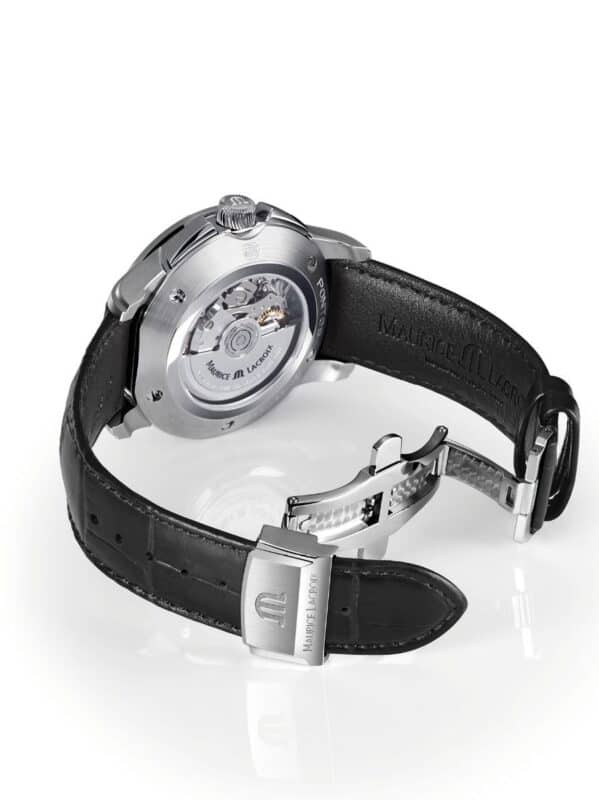 Maurice Lacroix Pontos Chronograph automatik herre ur med safirglas, sort læderrem og stopurs funktion. Uret måler 43 mm og har 100 meters vandtæthed.