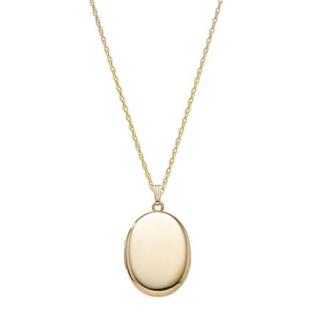Noa 20220581000, Medaljon m. 14kt. påvalset guld. Inkl. kæde. Vedhænget måler 29 mm i højden og 22 mm i bredden, og der medfølger en 50 cm lang kæde, hvor der ligesom på medaljonen er påvalset 14 karat guld.