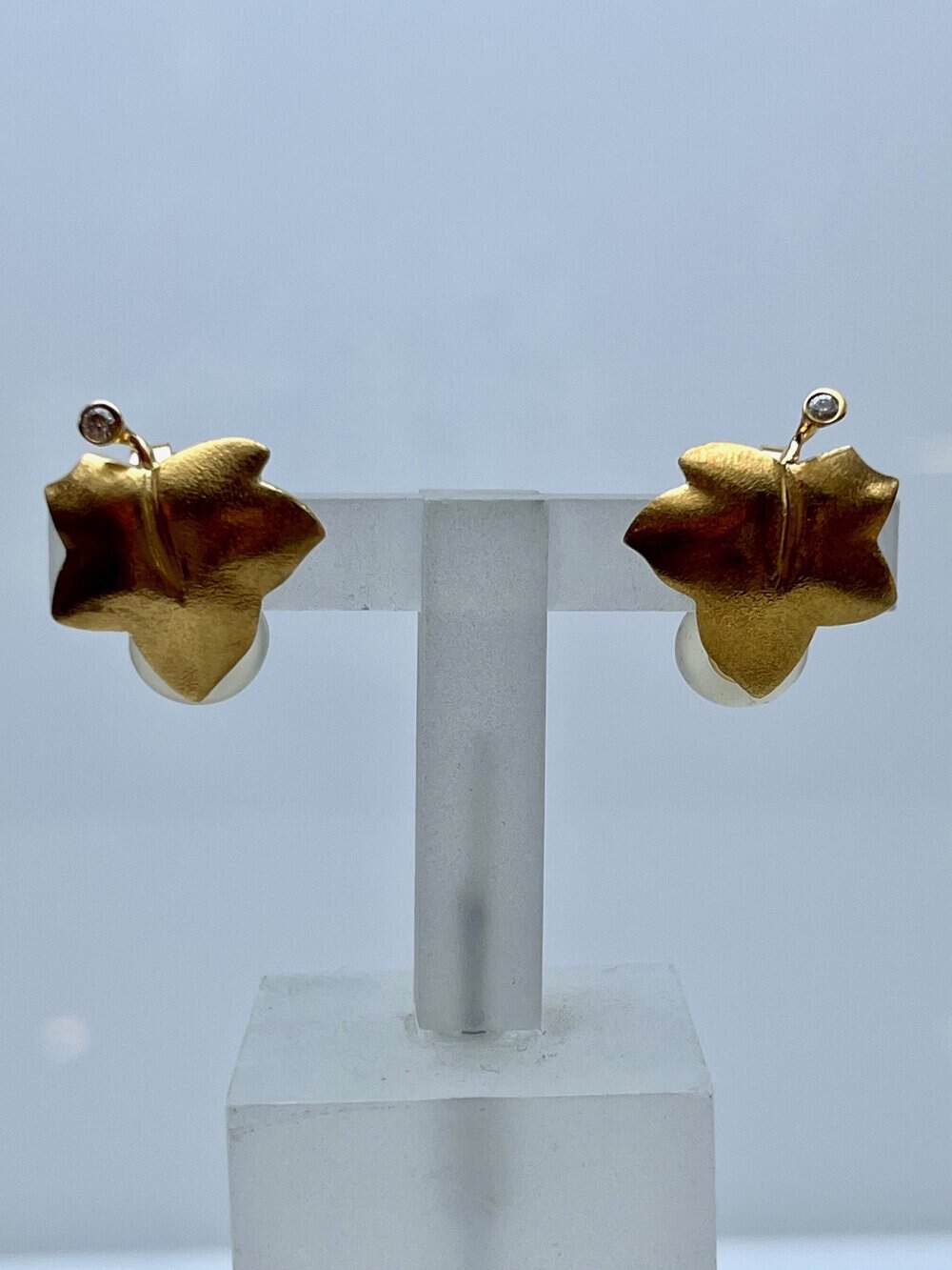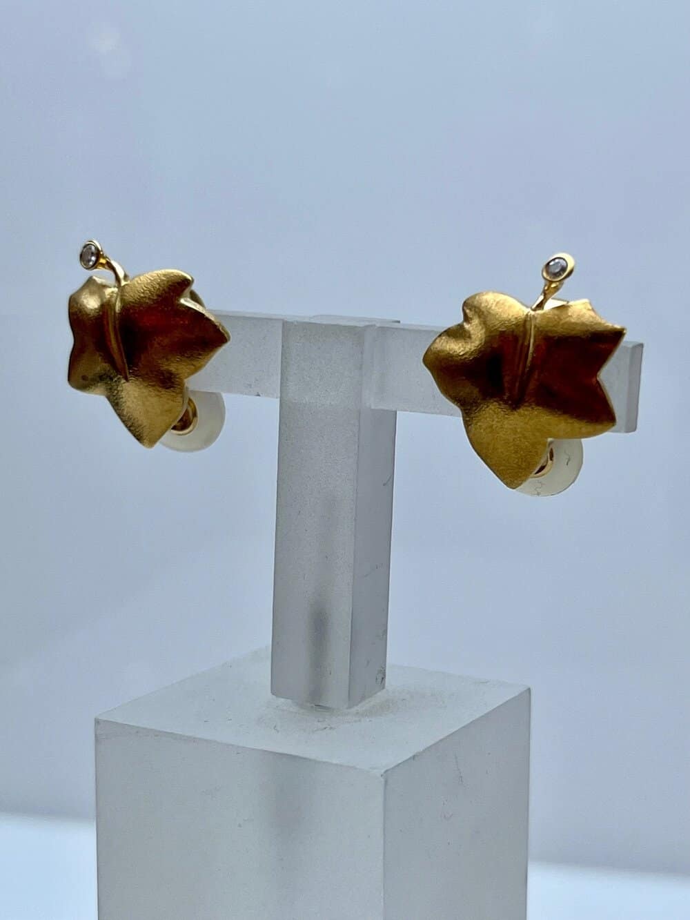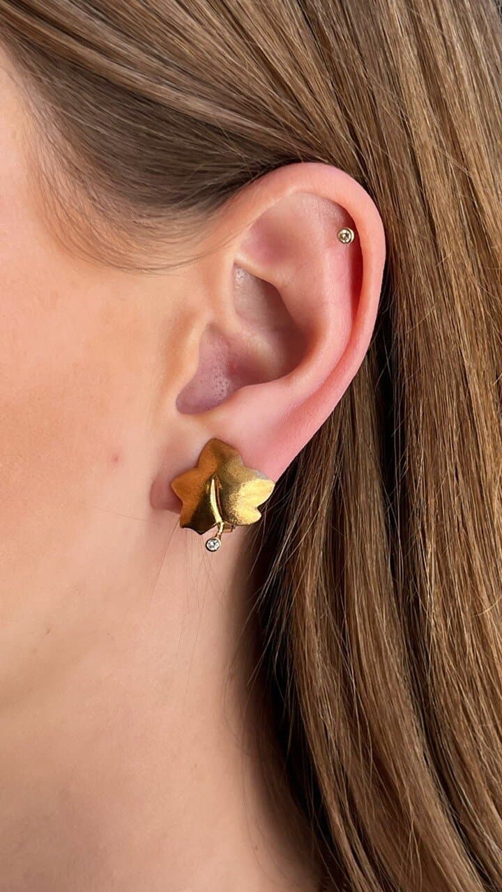 Ole Lynggaard 18kt øreklips med fine ahorn blade, hvor der i enden af hver stilk sidder en enkelt brillant på 0,06ct top wesselton vs.