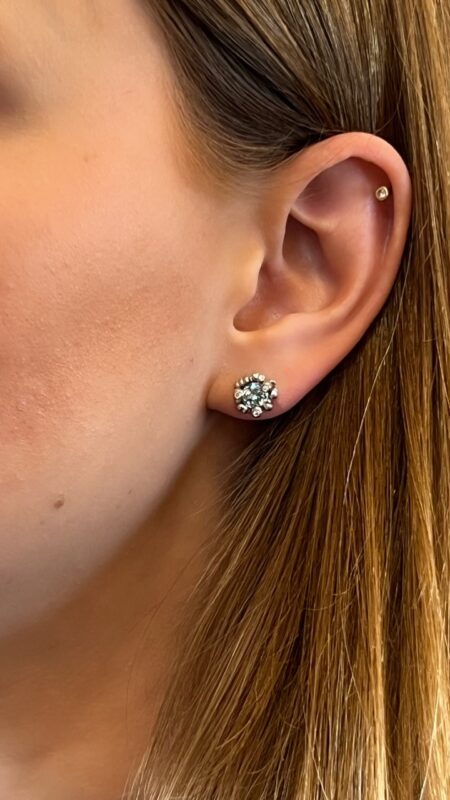 Ole Lynggaard 18kt hvidgulds ørestikker, med aquamarin og diamanter i alt 0,06ct tw. vs.
