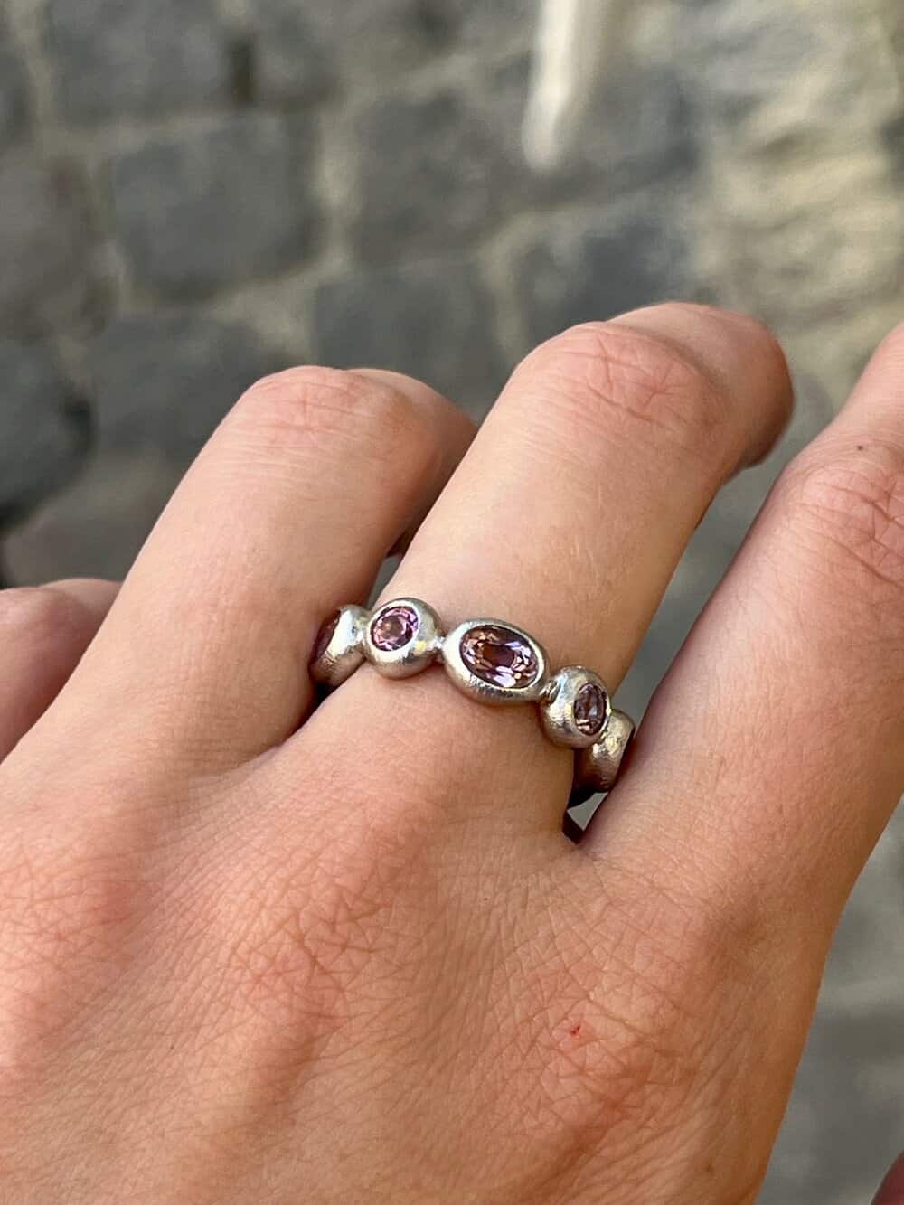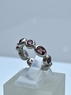 Dette vare har flere varianter. Mulighederne kan vælges på varesiden14 kt guldring med amatyst, granat og månesten.