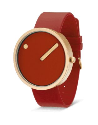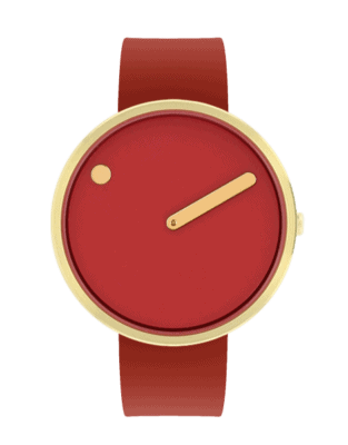 Picto ur 43397-7628G med rød silikone rem og rød skrive med guld kasse og viser.