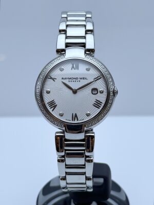Certina DS dame ur i stål/hvid med safir glas, sten, perlemorskive, dato samt lænke