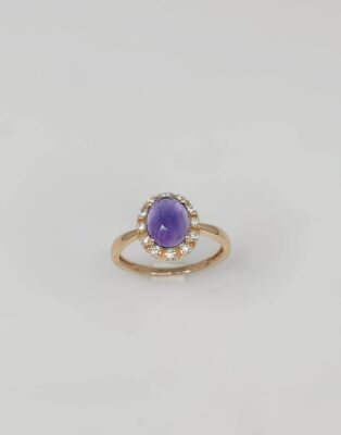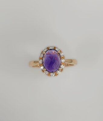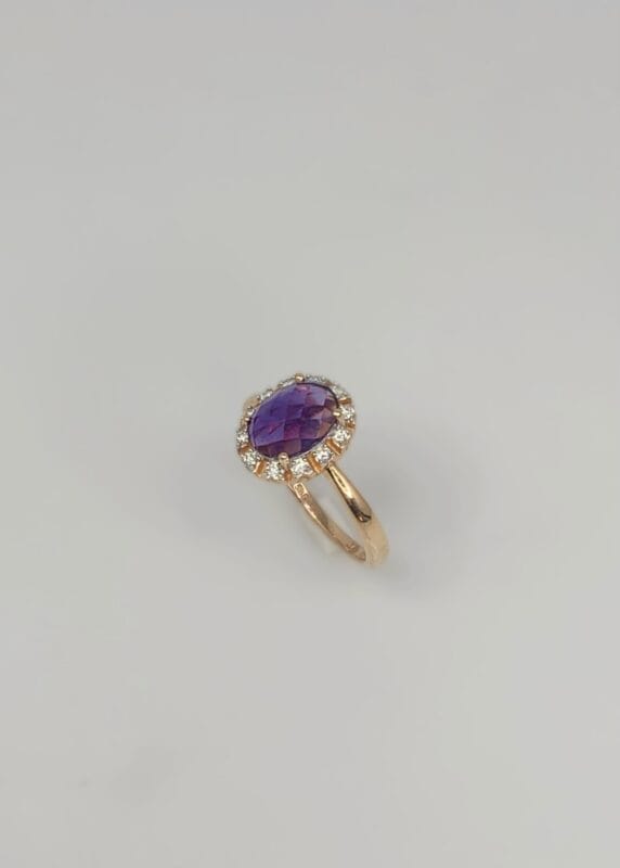 14 kt rosaguldring Rosetring med Amatyst og diamanter. 12×0,01 W.pi