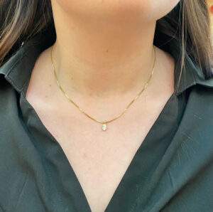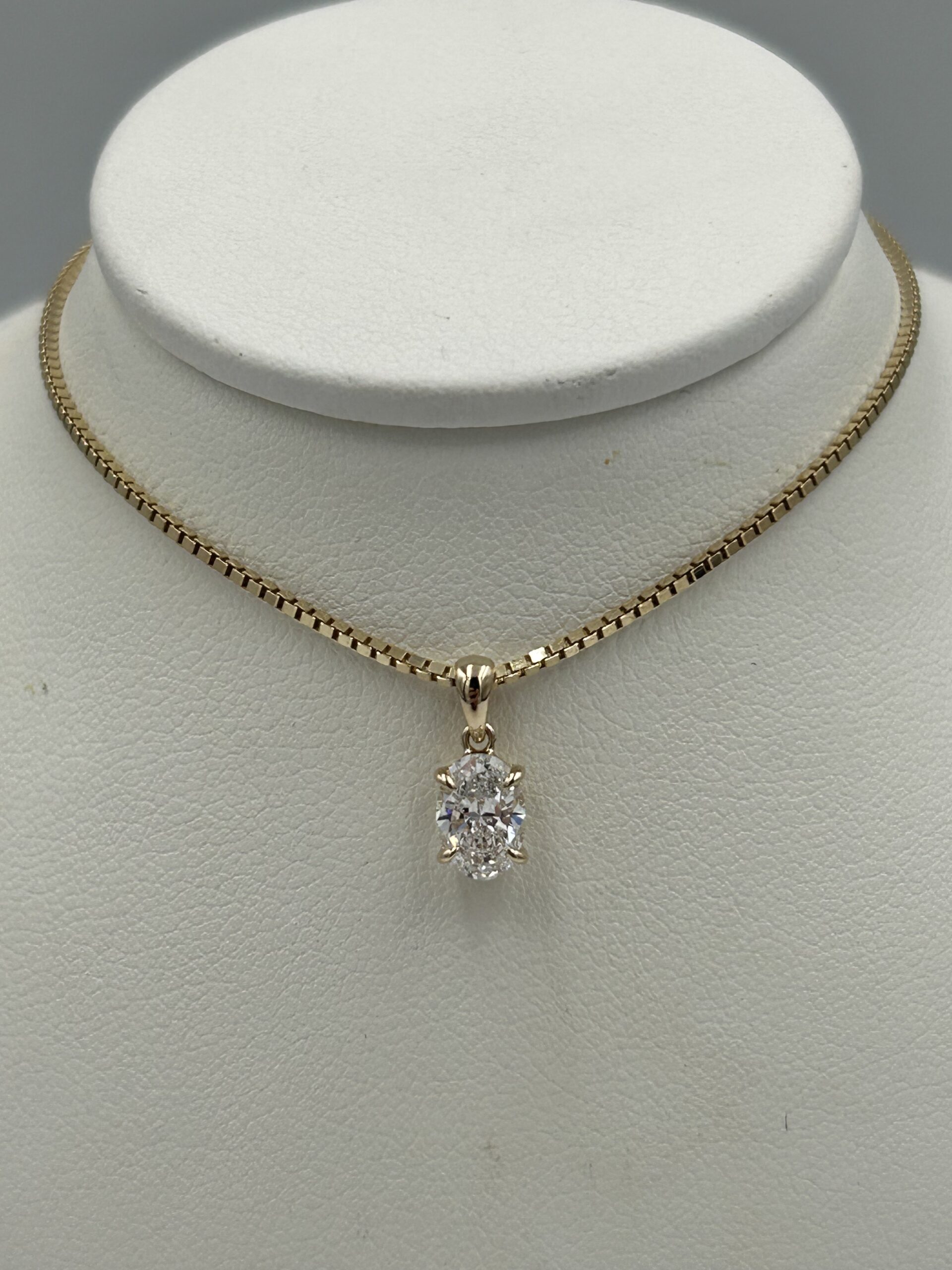 Dette smukke vedhæng er lavet i 14 kt. guld og bærer en oval brillant CVD diamant på 0,50 ct.