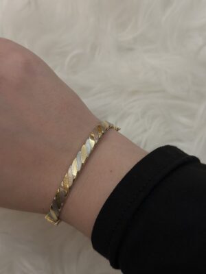 SKN 14kt rød- og hvidguld “snoet” armring med 8-tals sikkerhedslås – fra eget værksted.
