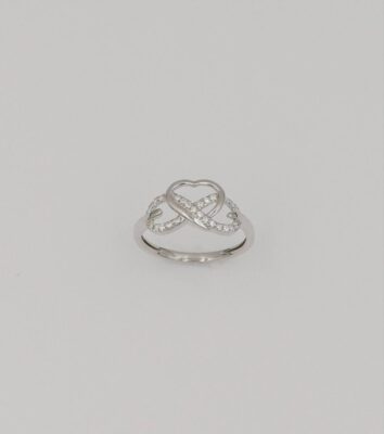 14kt hvidguldring fra eget værkstedet med hjerte og evighedstegn. 0,25 W.SI diamanter. ” Forever love”