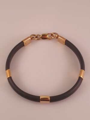 Gummi herre armbånd med 14 kt guldstykker og lås.