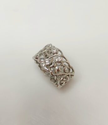 14 kt SKN blomster ring i hvidguld med 3×0,03 w.vs diamanter.