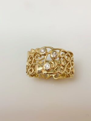 14 kt SKN blomster ring i guld med 3×0,03 w.vs diamanter.