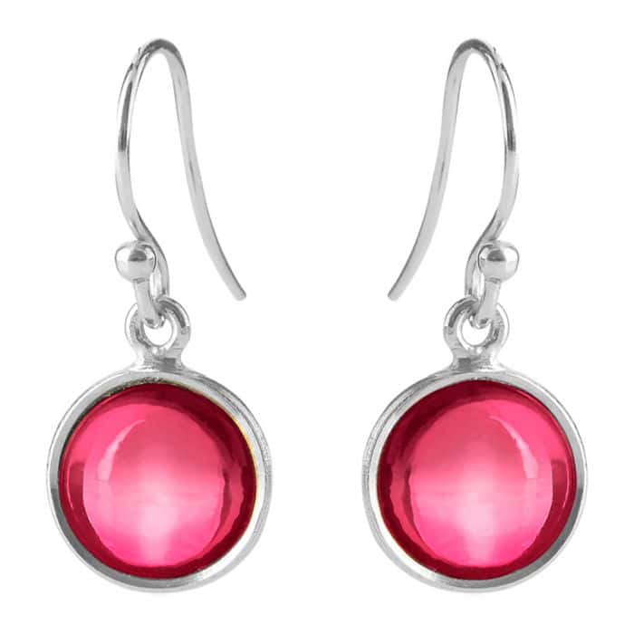 Susanne Friis Bjørner ørebøjler med lyserød krystal. Vælg mellem sølv eller sølv forgyldt.